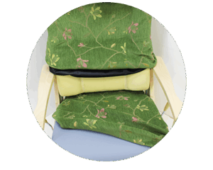 その為に→▣弊社ハイバックチェア【マルチチェア】の背のクッションが左右から体幹を抱え込むように張り出しているので、パーキンソン病特有の右側に傾く姿勢を防いでくれます。