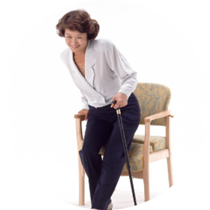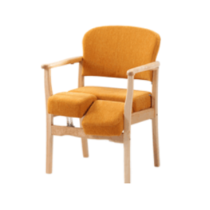 身体の上体を前に引っ張り、立ち上がる時には肘の先端が広く、手の平を乗せるのに十分の広さがあるので腕の力が十分発揮できて、立ち座りが楽にできます。